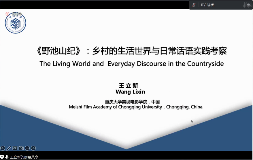 首先,王立新教授介绍了拍摄《野池山纪》时进行的在地文化实践。纪录片本身经历过主题的转换,实践时团队偶然遇到一位外表奇异的老人,启发团队从田园牧歌般的想象预设转变为记录乡民生活,以采用《野池山纪》为片名,揭示乡村陈述过程中掩盖的日常生活现实困境,以及这种困境如何被解答和释放。实践中发现,日常话语对困境的疏解发挥着重要作用。乡村生活世界里的日常话语具有多重性,官方话语、传统宗教话语与民俗俚语的交替杂糅表达了个人观点、态度、立场,是村民为自己的现世生活寻求合理依据与精神支撑的主要源头。节庆庆典仪式具有象征意义,而全球现代化进程所带来的象征性实践和象征性意义体系的转换,使得传统节日庆典的仪式功能越来越多地被日常话语实践替代,通过不同话语的邻接,帮助人们超越混乱、单一的时间里程,把握未来和个人命运。