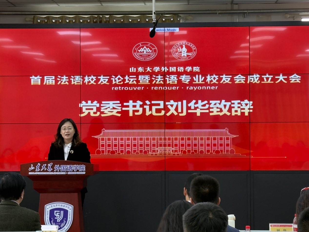 首届校友会会长、1995级校友宫黎在致辞中,深情回顾了自己在法语专业的学习时光,并表达了对母校的无尽敬意。她表示,她将与所有校友一道,努力将校友会打造成一个充满温情与凝聚力的大家庭。校友会秘书长、2007级校友黄龙表示,他将与各地校友携手合作,建立校友信息库,为在校学生提供就业机会,举办各类活动增进校友情谊,使校友会成为法语系发展的坚强后盾。曾任教于山大法语系的曹冬雪老师,以及2007级校友栾翘楚作为校友代表先后发言,回顾了山大度过的美好时光,并表示欣喜地看到法语系近年来取得的突飞猛进的发展。