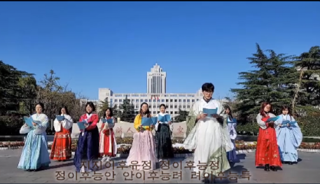 2021年12月24日,“2021儒家经典跨语言诵读大会年度盛典”在济南隆重举行,韩语系学子王佳程、张淑珺、徐鑫茹、萧含雨、张傲雪、叶宁惠、张皓月、史晓果、余彤、李梓萃、郑群冬共同参赛并获评“优秀双语传诵人”荣誉称号。