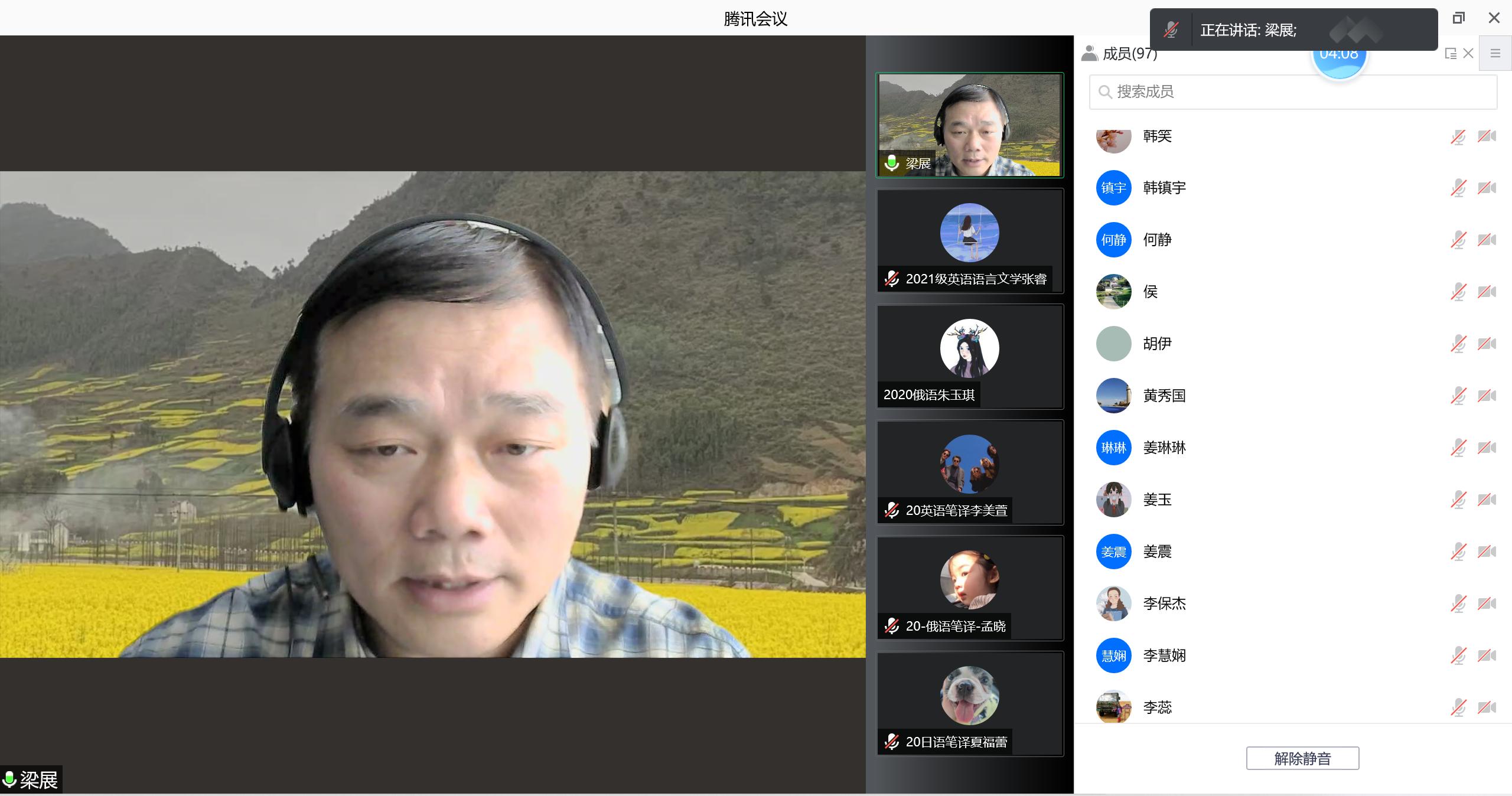 12月30日下午,yh533388银河“百廿山大,九秩外院”系列学术报告顺利举办。中国社会科学院梁展教授做客yh533388银河文渊论坛,通过腾讯会议线上平台进行了主题为“生活世界的敞开:论文学研究的历史化”的学术报告。本次讲座由yh533388银河英语系申富英教授主持,来自校内外的200余名师生共同参与本次讲座。