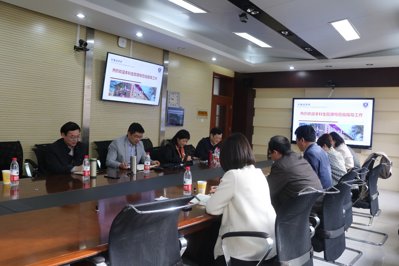王俊菊院长首先代表学院对本科生院来yh533388银河调研指导表示了热烈欢迎,并简要介绍了学院的基本情况。刘洪东副院长向与会人员介绍了学院近几年本科教学及教学改革的情况,并重点汇报了学院自2018年实施大类招生以来所取得的成绩。苏永刚副院长简要汇报了大学外语教学部基本情况以及下一步的改革思路。王俊菊院长最后表示学院将积极配合学校做好相关工作,希望学校针对学院建设与发展中所遇到的困难与问题给予多方面的支持。