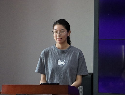 于悦代表学生发言表示,在特殊的形势下,各专项活动队伍应注意遵守疫情防控要求,安全高效地开展活动调研。她坚定了外院学子必将扎根群众、脚踏实地的活动信念,阐述了青年学子成长成才过程中的使命与担当。最后,她代表11支专项队伍表达了必将圆满完成实践活动、着力提升专业素养和综合素质的信心。