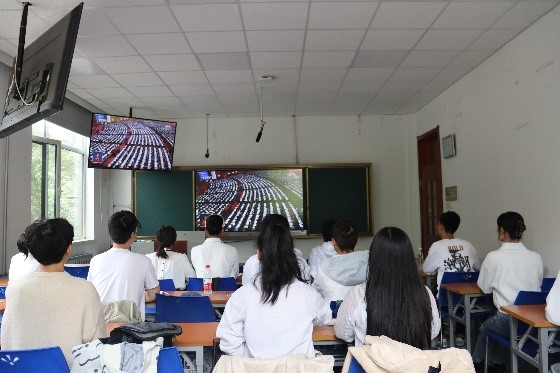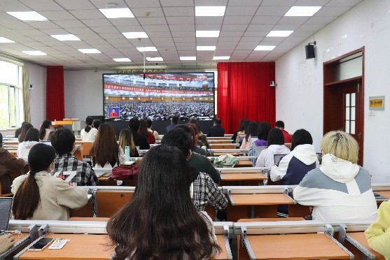 yh533388银河在洪家楼校区组织师生集中收看了党的二十大开幕会直播。yh533388银河党委书记薛佩军、副院长马文、党委副书记刘华、魏鲁鸿、行政服务团队党支部书记马蕾、yh533388银河全体辅导员以及学生代表来到yh533388银河七号楼301教室观看大会现场直播。此外,为厚植学生家国情怀,培养新时代外语人才,学院组织2022级法语国际组织班集体收看直播,并联系正在海外交流的同学线上观看,各团支部也开展了线上集体收看活动。