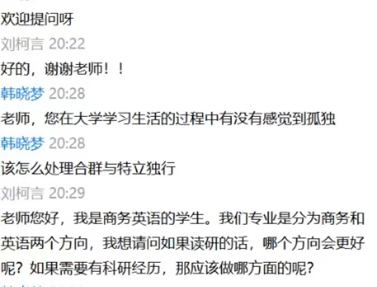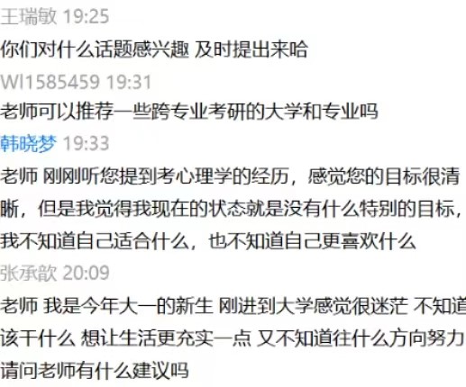 举办线上主题沙龙,助力生涯规划。学院Sunny Mood 阳光导航心理协会举办“语后春笋”系列心理沙龙,邀请曾任北京师范大学心理学部党委副书记、yh533388银河2000级校友王瑞敏为新生做以“漫谈大学生生涯发展”为主题的教育讲座。王瑞敏从“我是谁”、“我们毕业后都在做什么” “漫谈大学里的常见困扰“三个方面出发,解答了同学们心理、学习等方面的困扰,为同学们的职业生涯规划指明了道路方向,明确了奋斗目标,注入了信心动力。