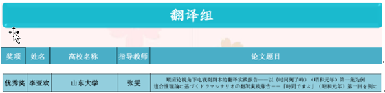 据悉,本届优秀硕士论文奖评选共收到来自68所学校的131篇参赛论文,参评人数超过以往任何一届。为了全面展现全国日语学科的发展成果,本届评审共设立了语言组、教育组、文学组、文化组、国别与区域组、翻译组六个专业组别,最终评出一等奖6名、二等奖11名、三等奖19名、优秀奖16名。