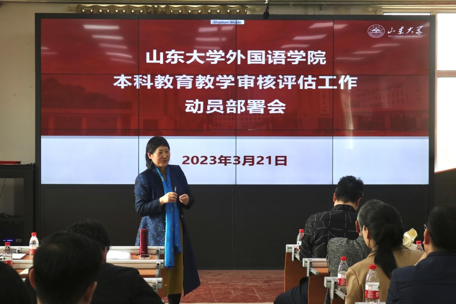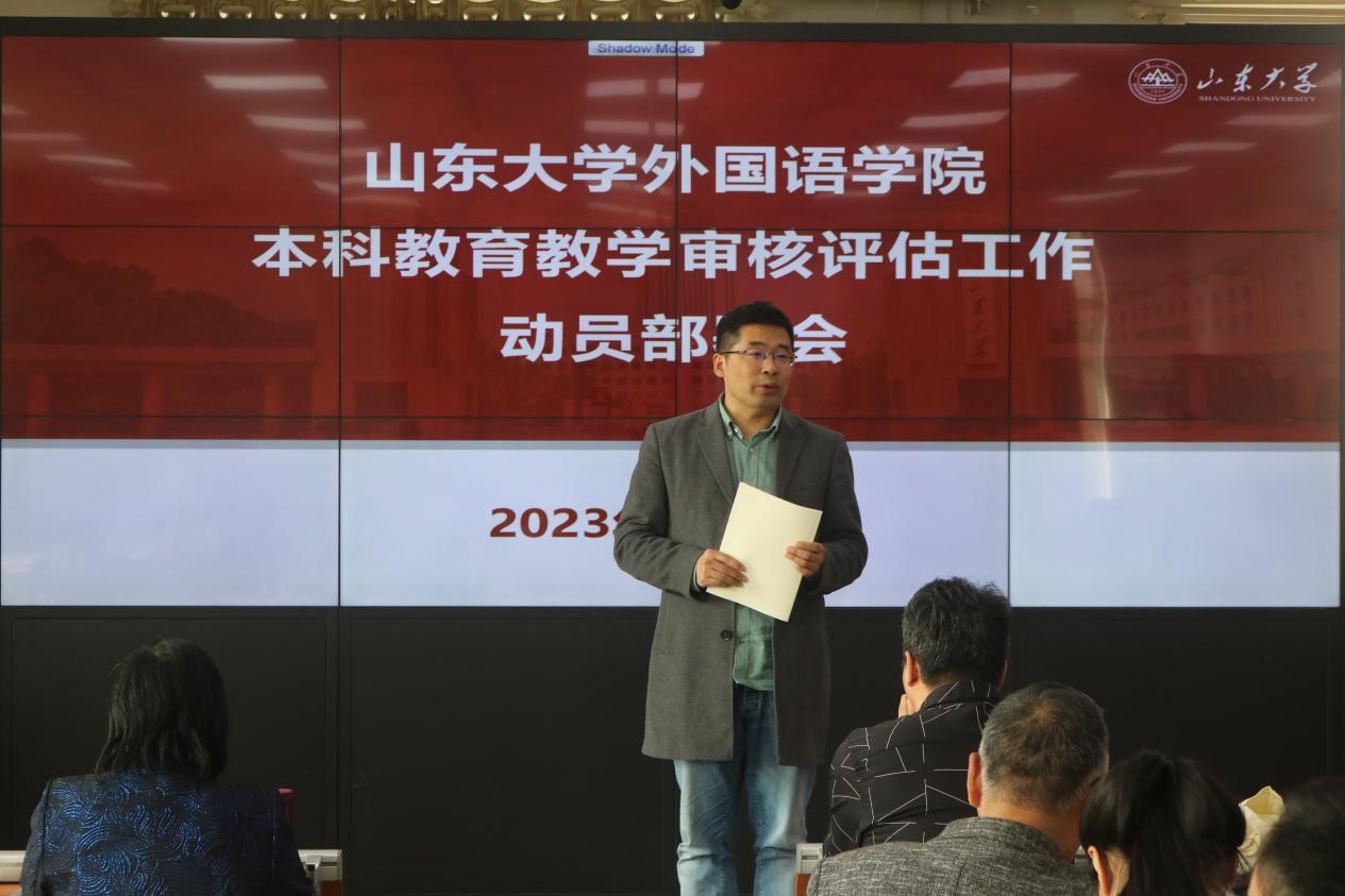 最后,刘洪东副院长梳理了本次审核评估工作的时间线,明确了目前较为紧迫的工作任务并对本次动员部署会做出总结。他强调,在本次迎评工作中,各系、各教研室及各科室要充分挖掘自身掌握资源,积极联动协同,凸显外院特色,在各方面起到引领作用,争取优秀成绩。他号召各位老师积极投入到迎评促建的各项工作中,力争以饱满的工作热情、积极的工作态度和优良的工作作风圆满完成yh533388银河新一轮本科教育教学审核评估工作。