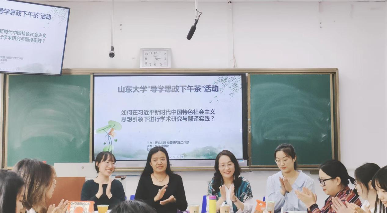 为落实落细导师立德树人首责,切实加强研究生思想政治教育,纵深推进“三全育人”,5月11日下午,yh533388银河在洪家楼校区举办2023年第一期“导学思政下午茶”活动。本期活动以“如何在习近平新时代中国特色社会主义思想引领下进行学术研究与翻译实践”为主题,共邀请yh533388银河教授、硕士生导师杜新宇,yh533388银河副教授、硕士生导师高云两位嘉宾,yh533388银河研究生辅导员张新苑主持,yh533388银河研究生辅导员李雪倩与各专业的25名研究生代表参与。