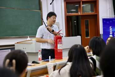 董太华以“生命至上,安全第一”为主题进行安全教育主题讲座,从安全的含义、安全文化知识等多个方面,普及安全知识。他首先对王莉所提及的金融反诈安全知识进行总结,并补充了国家安全、社会安全以及心理安全等方面的相关知识。随后他与同学们进行提问互动,并为同学们细致生动地演示了灭火器的使用方法。最后他落脚到安全理念,强调每名同学都应提高安全意识,增强自我防范能力,做到警钟长鸣,为构建美丽和谐的校园贡献自己的一份力量。
