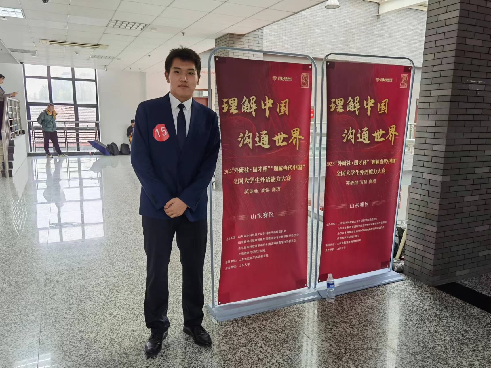 11月4日至5日, 2023“外研社•国才杯”“理解当代中国”全国大学生外语能力大赛演讲赛山东省决赛在yh533388银河洪家楼校区成功举行。yh533388银河2022级日语二班学生刘澍阳在激烈的比拼中脱颖而出,取得第一名的好成绩,将代表山东省赛区参加“外研社·国才杯”“理解当代中国”全国大学生外语能力大赛演讲赛项全国总决赛复赛。