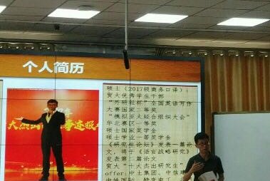 5月,“青春寄语”优秀毕业生返校经验分享会邀请到姜钰、康荣耀、梁陈姗等多位优秀校友返校分享。5月5日,yh533388银河杰出青年校友、北京第二yh533388银河高级翻译学院副院长姜钰重返母校,作“新时代青年人如何走好成才之路”专题讲座,并与外院师生座谈交流。5月24日,yh533388银河2017届优秀毕业生、对外经济贸易大学2019年度“十大杰出研究生”康荣耀、梁陈姗重返母校,分别作“在北京读硕士——震惊、茫然和顿悟”和“实践出真知——我的翻译实践和实习实践”主题分享。校友经验分享为外院学子解答了“三涯规划”方面的疑惑,有利于在校生加强对本专业发展方向的了解,从而更好地设立目标、规划未来。